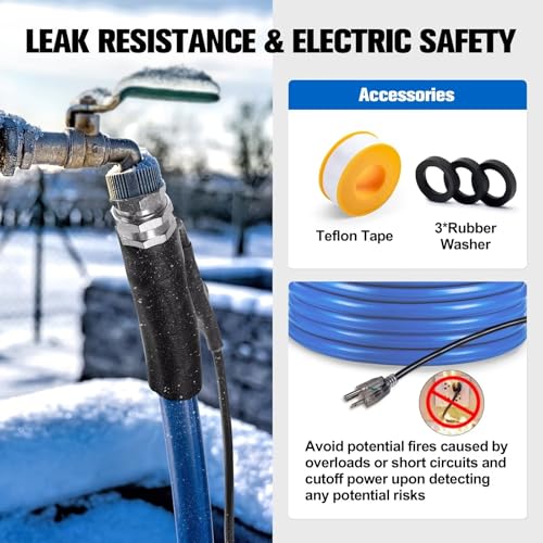 Intelligent Freeze Protection: The heated water hose comes equipped with an advanced intelligent heating control system that guarantees water flow in freezing temperatures down to -4°F (-20°C). Whether you're on the road in your RV or enjoying a winter camping trip, this hose provides reliable freeze protection, preventing water from freezing in extreme cold.
