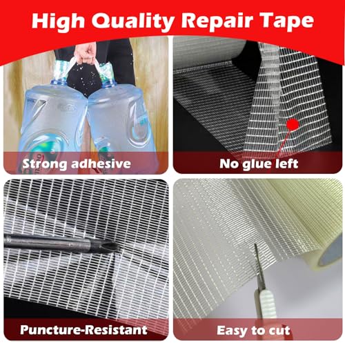 Heavy Duty Tarp Tape: Our clear fiberglass tape provides reinforced strength, boasting exceptional tear and puncture resistance. Its transparent vinyl surface delivers superior waterproofing, ideal for both outdoor and indoor use across diverse weather conditions.