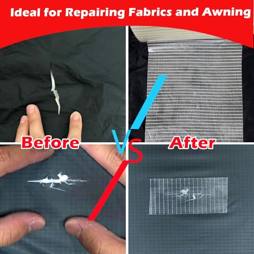 Fabric and Awning Repair: Our 5-inch wide fiberglass repair tape efficiently restores damaged fabric surfaces, ensuring a permanent fix for canvas, tent, RV awning, and more. Versatile application extends to leather, boat covers, tarps, sails, and beyond. Also functions as sturdy strapping and packaging tape.