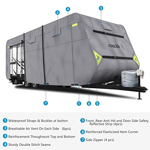 ?Weatherproof & Breathable?: Oxford polyester with 8 air vents to keep airflow, reduce wind stress, and vent inside moisture, a quick-drying cover to protect your travel camper well even in SNOW & WIND & RAIN days.