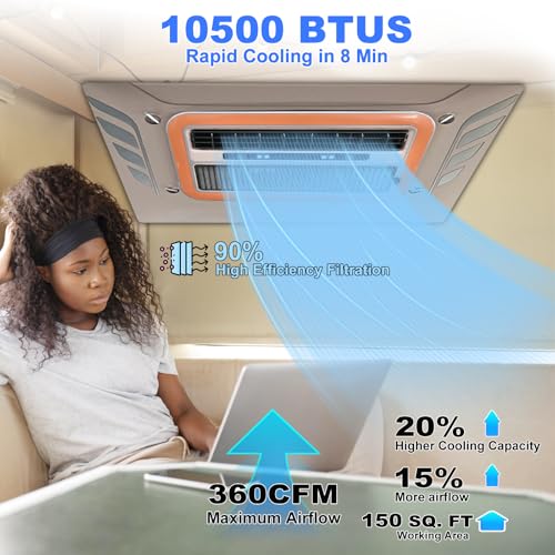 ?????Fast Cooling Without Long Wait?The RV air conditioning unit is equipped with a professional grade 18cc scroll compressor with R-134A refrigerant and up to 3000-speed motor, which can quickly cool a 29' trailer in less than 10 minutes and ensures fast air circulation.