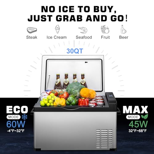 The Best Choice Uesd For Camping - Capacity: 30QT(28L). Size: 25.6*14.4*14 inches. DEAPRULL electric cooler fits comfortably in the trunk, RV or truck. Supports storing 44 cans of Coke, 29 cans of beer, or 11 bottles of red wine, perfect for outdoor activities.