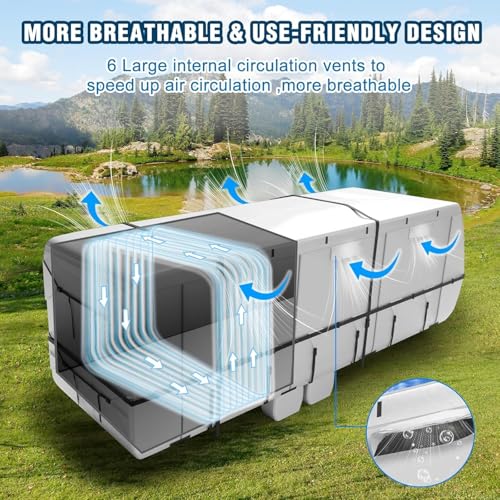 SUPER WIND & TEAR RESISTANT: DenForste RV cover is made of high quality 420D Oxford fabric, sturdy and breathable, 100% water resistant, suitable for all climates and strong level 5 winds, with superior quality and innovation.