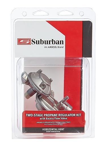 SAFE PROPANE CONTROL: The Suburban by Dicor LP-R524HP Two-Stage Regulator Kit with Excess Flow Valve - Horizontal Vent ensures safe propane gas pressure control in your RV or motorhome.