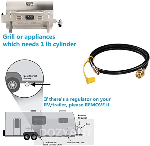 Cost effective - Stop spending your money on 16.4 oz/ 1Lb propane tank that will last you few hour of usage, this hose allows connection from the RV female quick disconnect to a portable camping appliance, eliminating the need for a 1 pound bottle