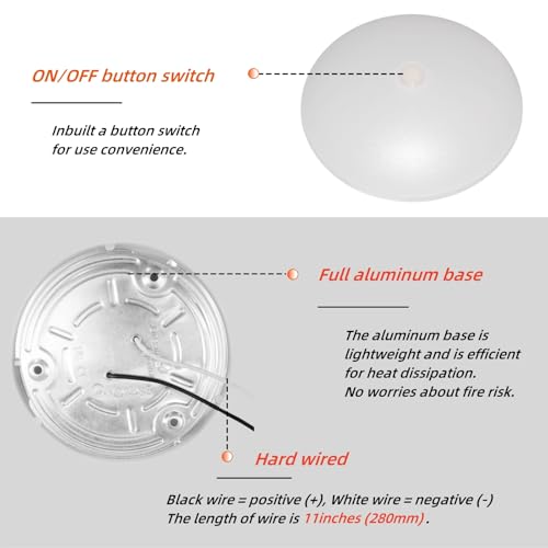 ?Easy to Install?Designed with surface mounting construction, all of its screws will be concealed after installation. Hard wired: black wire is positive(+), white wire is negative (-).