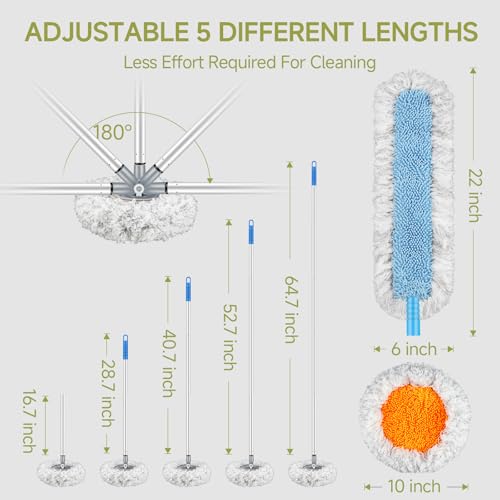 Premium Chenille Material: Our mop utilizes upgraded double-sided chenille fabric with superior water absorption and a soft touch. The mop pad is removable, reusable, and machine washable, ensuring efficient cleaning without scratching your RV's finish. The latest chenille design provides a larger mop surface and enhanced dusting fibers for thorough cleaning