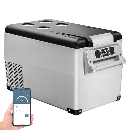 Large Capacity & Movable Design: The EKOJUCE 12 Volt Car Refrigerator has a practical large capacity area. The basket with detachable flaps allows you to determine the layout of the space according to your food storage needs. The portable refrigerator allows you to store a variety of foods while keeping them fresh. The fridge is designed for easy movement, which is convenient for outdoor use, making it easy to carry and reducing your burden. NOTE: Before using the fridge for the first time, please leave it standing upright for a day