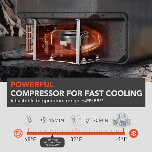 Powerful Compressor: EKOJUCE 12 Volt Car Refrigerator uses advanced refrigeration technology and is equipped with a powerful compressor for small size and high efficiency. The Electric Cooler has UL certification, is energy-efficient, and has low energy consumption. You can choose between the energy-efficient ECO mode or the fast cooling MAX mode. Thanks to the powerful compressor, you can use it indoors, in the garage, or at an outdoor party