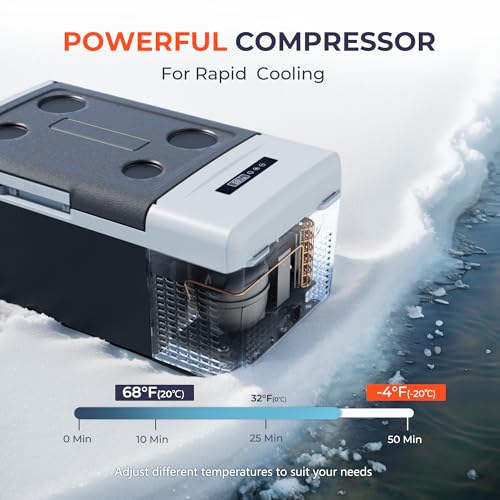 Quiet Operation & LED Panel: The Car Fridge operates quietly at 42dB, ensuring a peaceful environment even during operation, making your journey more enjoyable. The LED panel allows you to adjust the temperature range as needed and monitor the 12V car refrigerator's operation at any time. You can set any temperature from -4? to 68? (-20? to 20?)