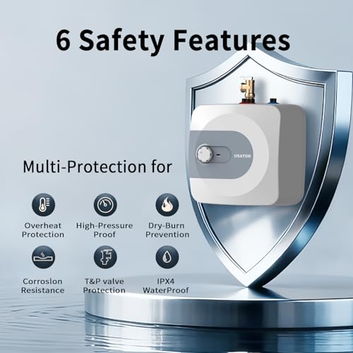 Instant Hot Water & Rapid Reheat - Usaton electric mini tank water heater rapidly heats water, minimizing your wait time and efficiently meeting your hot water needs. Our under sink hot water heater electric has a temperature adjustment range of 65 'F -161 'F. The 316 stainless steel heating element achieves up to 98% heat utilization, maximizing energy and power savings. meeting your demand for a fast water heating solution