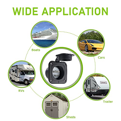 Application: As a generator or battery charger plug to power your electrical equipment. Widely used in motor homes, campers, snowplows, cars, trailers, ships, marine heaters, garden sheds, bumpers, embedded socket boxes, etc