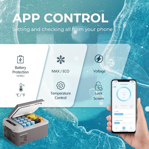 Powerful Compressor & APP Control:This compact and portable 12V cooler combines convenience and performance with its spacious 11 quart capacity, functioning seamlessly as both a fridge and freezer. Powered by an advanced compressor, it rapidly cools from 68°F to 32°F in just 15 minutes, ensuring your food and drinks stay fresh and chilled. Enhanced with Bluetooth connectivity and app control, this portable freezer allows you to effortlessly monitor and adjust settings remotely.