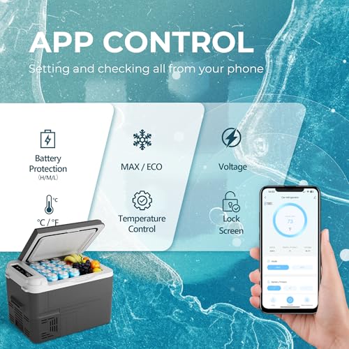 Powerful Compressor & APP Control:This compact and portable 12V cooler combines convenience and performance with its spacious 11 quart capacity, functioning seamlessly as both a fridge and freezer. Powered by an advanced compressor, it rapidly cools from 68°F to 32°F in just 15 minutes, ensuring your food and drinks stay fresh and chilled. Enhanced with Bluetooth connectivity and app control, this portable freezer allows you to effortlessly monitor and adjust settings remotely.