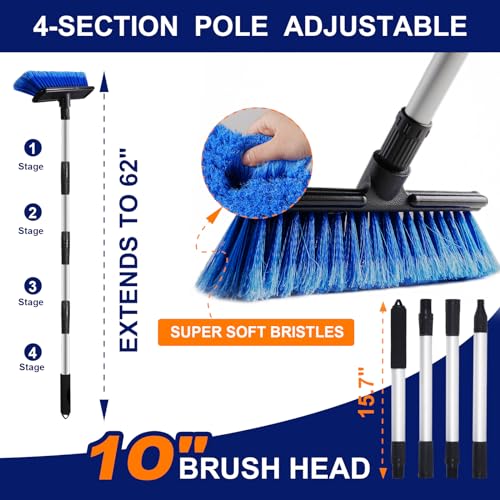 ?Wide Application?The car detailing truck washing brush is the perfect helper for washing, drying, waxing, dusting and polishing your vehicles or household. Not only can you wash a Truck, Bus, SUV, motorcycle, RV, boat, caravan solar panel house siding, but the car washing accessories Brush is awesome for windows, dusting ceiling fans, sweeping snow, outdoor sheds, boat, kids slides, outdoor structures and your home accessories!