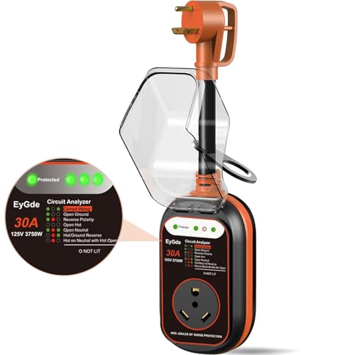 RV Certified RV Surge Protector 30 Amp - The EyGde upgraded 4500 Joules 30 amp rv surge protectors with Certified, very safety and reliable. It can identify the faulty power sources quickly. Protects your RV trailer electrical equipment from dangerous high or low voltage, even sudden power surges caused by thunderstorms or lightning strikes. Great camper accessories gifts for RV, travel trailers, motorhome. Gives your peace of mind