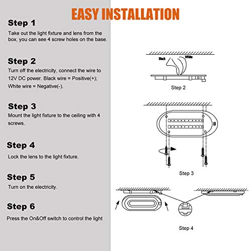 ?Universal Fitment & High Quality GUARANTEE? Designed for 12 Volts DC Power. Excellent LED Dome Light Replacement for RV, Motorhome, Camper, Caravan, Travel Trailer, Boat, Marine, Cabin, Kitchen, Cabinet, Stateroom. Passed US Standard cETL Quality Certification. We take full Responsibility for our RV Lights and Customer Dissatisfaction. One Year Warranty GUARANTEE !