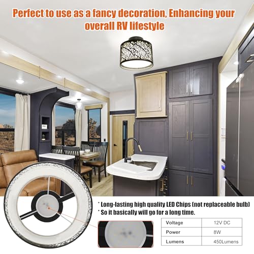 Efficient Lighting Solution: This 12V DC RV LED pendant light uses only 8W to deliver a bright 450 lumens, providing optimal illumination for your dining area without draining your battery.