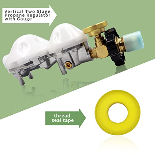 ?Widely Application?2 Stage Propane Regulator is made of 100% solid brass to provide secure and sealed connection between application equipment and propane tank and solved the problem of gas leakage.Dual propane regulator with Gauge for gas grills, RVs, generators, stoves, heating boilers, burners, gas generators, gas stoves, propane fireplaces, water heaters, etc.