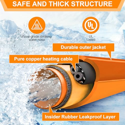 Ficstar 30FT Heated Drinking Water Hose for RV, Heated Water Hose Antifreeze to -45°F, 5/8" I.D. with 3/4" GHT Adapter, Lead and BPA Free,No Odor