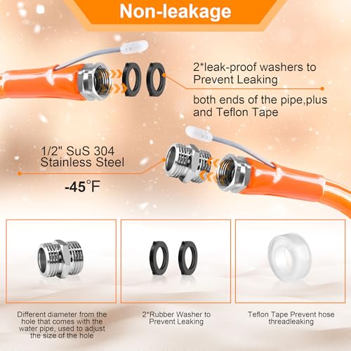 ?Non-leakage?There are leak-proof washers at both ends of the pipe,plus and Teflon Tape, which is wrapped around the end to prevent water from leaking out.The terminal portion of the heated hose for Ficstar RVs has better thermal conductivity, lower resistance, and saves electricity.