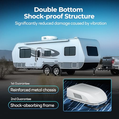 Safe and Reliable: At 12.2 inches tall, this white RV rooftop AC unit easily clears low bridges. A dual-layer base absorbs bumps, while foam insulation protects key components for a smooth ride.