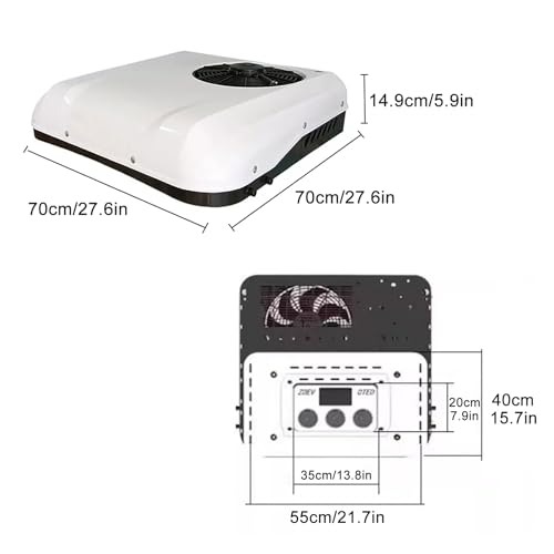 ?Inverter Cooling & Lownoise Tech?Our inverter RV air conditoner will adjusts its operating frequency to the environment, thus reducing energy consumption. The a/c unit is equipped with a household-type ultra-quiet evaporator, intelligent temperature control, and operation below 45dB to create a comfortable space.