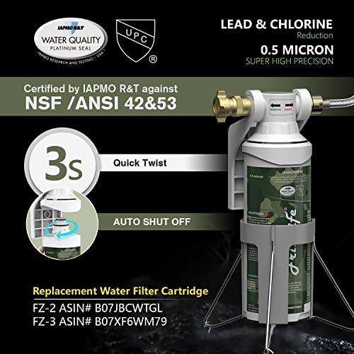 [Certified Trusted Water] Frizzlife MV99 Lead Free RV water filter system is certified by IAPMO R&T against NSF/ANSI 42&53. With TOP TIER composite activated carbon block at 0.5 micron filtration accuracy, the water purifier can reduce Chlorine, Sediments, Lead & Other Heavy Metals, Bad Taste & Odors, and other harmful contaminants from water while leaving in essential minerals, ensuring much safer and better tasting water for your outdoor usage.