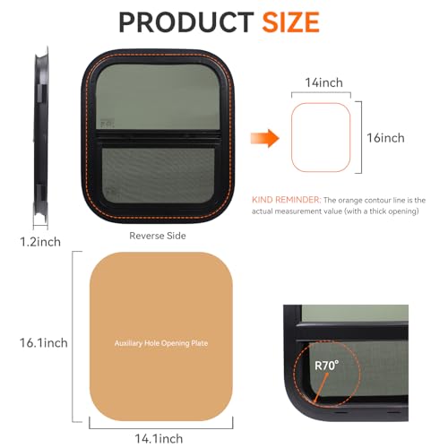 Size: The Rough Opening is 14" Width, 16" Height, It fits 0.9" to 1.3" thick wall(Additional longer or shorter screws may be needed), also equipped with 16 to 18 mesh removable screens for insect control and ventilation.
