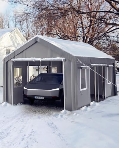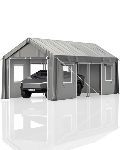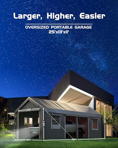 [Oversized Upgrade] Biggest size portable garage in the market; capable of parking full-size pickups, bass boats, sedans, SUVs, and crossovers; L x W x H - 25 x 13 x 11 FT