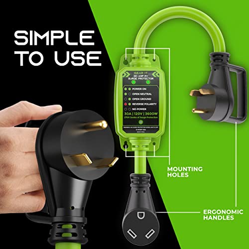 Heavy-Duty Surge Protector - Built to last, this heavy-duty surge protector features PVC insulation and 10AWG conductors that support up to 30A, 120V, 3600Watts, and dissipate up to 2700 Joules. The indicator diagnostic LED makes it easy to know if you have a safe RV connection.