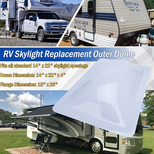 ?Compatibility?Fits all standard 14" x 22" skylight openings, Dome Dimension: 14" x 22" x 4",Flange Dimension: 18" x 26".Fits most RVs, campers, travel trailers, motorhomes and 5th wheels with standard sunroof openings