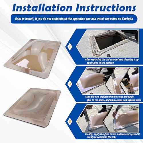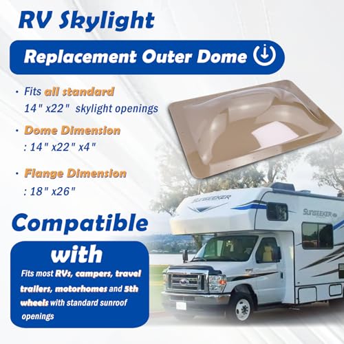 ?Compatibility?Fits all standard 14" x 22" skylight openings, Dome Dimension: 14" x 22" x 4",Flange Dimension: 18" x 26".Fits most RVs, campers, travel trailers, motorhomes and 5th wheels with standard sunroof openings