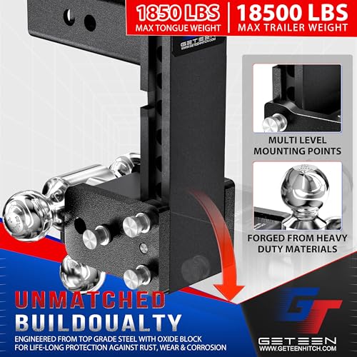 BETTER QUALITY, HALF PRICE: GETEEN adjustable drop hitch are produced in Ohio and offer the same excellent quality, strength, and reliability as other brands, but at a more affordable price. Precise engineering design ensures perfect compatibility with various vehicles, with excellent compatibility and easy installation. Each hook undergoes rigorous quality testing to meet the highest industry standards, ensuring its outstanding performance in various towing scenarios.