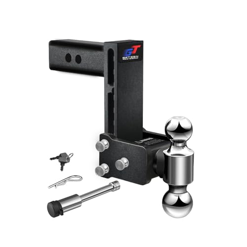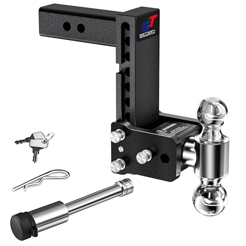 HIGH TOWING CAPACITY: GETEEN trailer hitch has a 7-inch adjustable function of raising and lowering to achieve horizontal towing. Only compatible with 2.5 inch receiver device. 2" hitch ball has towing capacity of 8,000lbs, while 2-5/16" hitch ball has towing capacity of 15,000lbs.