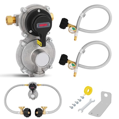 AUTOMATIC CHANGEOVER FUNCTIONALITY -- Getoolet's RV propane regulator 2 tank hoses lets you connect the 2 propane tanks on your RV to maintain a constant gas pressure. It automatically switches to the full tank when the other is empty, and you can remove the empty cylinder without interrupting propane supply.