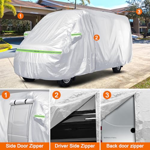 [ZIPPER ROLL DOOR DESIGN]: The driver's side zipper, Passenger side zipper allow easy access to the interior of the vehicle without removing the cover. There are two zippers at the rear door position of the car to roll up the rear door for easy loading of cargo or getting in and out of the car. There are also night reflective strips on the surface of the hood, making it easy for you to see the outline of the car at night to avoid accidents.