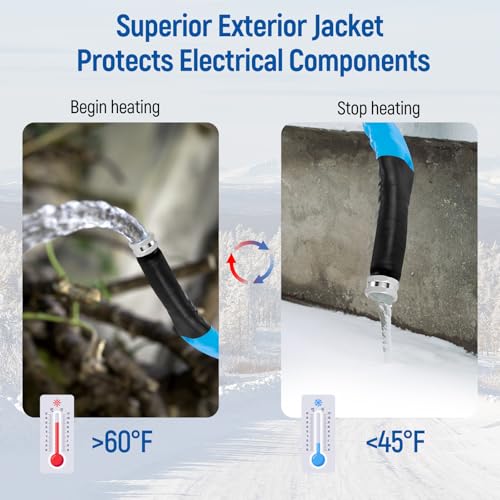 Reliable Safety Features: Operating on 120V AC, the hose includes a ground fault circuit interrupter (GFCI) for safety, preventing overheating due to short circuits. Made with lead-free and BPA-free materials, it ensures that the water remains safe and clean for you and your loved ones.