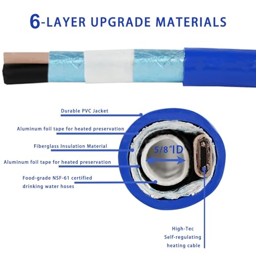 ?NSF-61 Certified for Drinking Water Safety?: Embrace health and safety with our heated hose, certified for drinking water. Crafted with food-grade materials, it guarantees no plastic taste or harmful chemicals, keeping you and your family safe and hydrated.