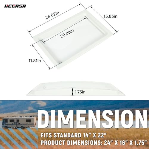 Fitment: This skylight inner dome is compatible with most RV and food trucks. Opening Dimension:22 x 14 inches. Product dimension :24 x 16.125 x 1.75 inch. Please check this carefully before purchasing!