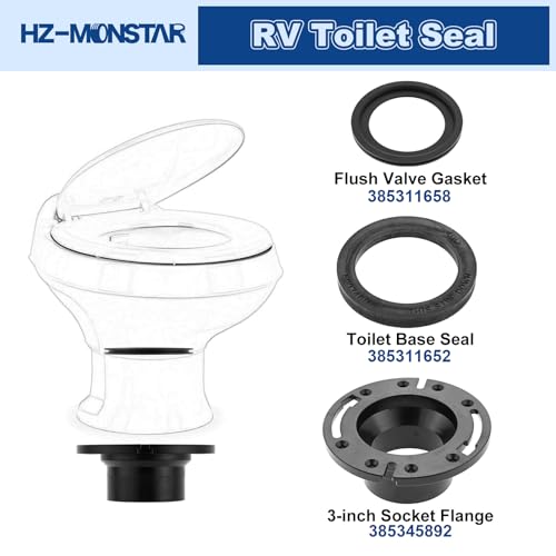 ?Package Included?RV toilet seal and 3 inch socket RV toilet flange kit includes 1pc RV toilet flange (385345892), 1pc waste ball seal (385311652), 1pc RV toilet seal for bottom drain position (385311658), 4pcs plastic gasket and 1 set of bolt fittings with cap.