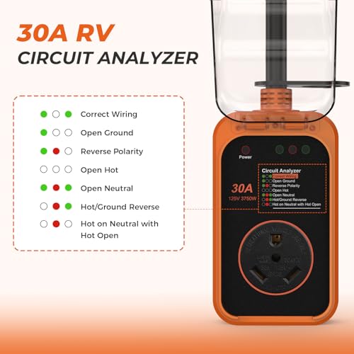 ?Safety Protection?: FCC tested. Flame-retardant materials, and IP68 waterproo. The camper surge protector comes with anti-theft hang ring for locking. With upgraded waterproof cover (Ultra Large), can adapt to various plugs. you can easily plug and pull Out the 30 amp camper plug from Electrical Box.designed with waterproof cover which protects the circuit from rain, wind, sandstorm. The sturdy cover is designed to reduce the risk of short circuit or fire.