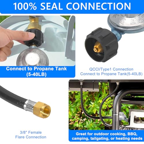 ?Easy to install?:The propane y hose QCC1 female connector is equipped with a non-slip knurled design, fast connect to propane tank, without any tools. The QCC1 port of propane hose directly to the 5-20lb propane tank, saving time, money and space.