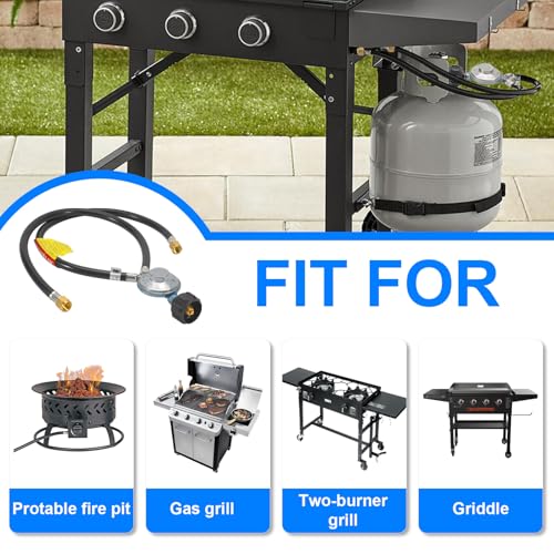 ?Practicality?: 2 feet y-splitter regulator and hose for gas grill, heater, fire pit, lp generator, lantern, two burner camping stove, side burner. Fit for most low pressure gas appliances.
