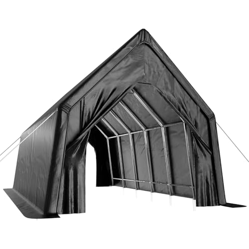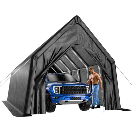 ?Sturdy and Anti-Snow?37*0.8mm Rust Resistant galvanized steel framework makes our carport sturdy in the storms. The cover uses ratchet straps to tighten the top cover, bearing wind.4 windproof ropes, enhancing the stability of the carport