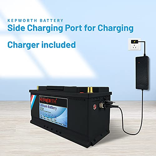 KEPWORTH 12V 100Ah Lithium Iron Battery LiFePO4 Deep Cycle Batteries, Built-in BMS, 5000+ Cycles, 10 Years Life,Perfect for RV, Solar Power System, Home Storage Outdoor Camping/5-Years Warranty
