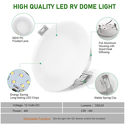 ?Dimmable design? These 12v led lightings are dimmable design without flicker to meet your different demands. it consumes lower power of your vehicle battery while providing efficient lighting ,it adds great functionality to any area for lighting and it is widely used as perfect replacement light for rv lights,trailer lights,camper lights and boat lights.