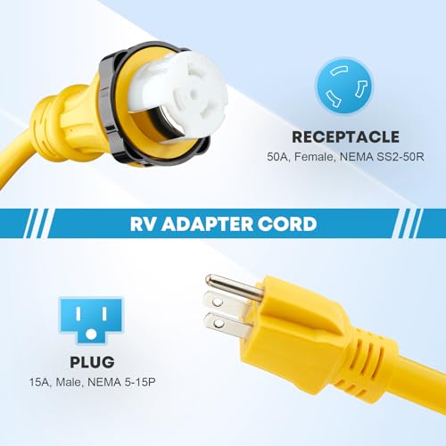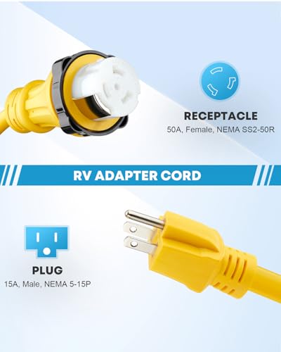 ?A Must-Have for 50 Amp RV?15 Amp to 50 Amp RV Adapter Cord can be used in all seasons to connect your RV to home power supply.