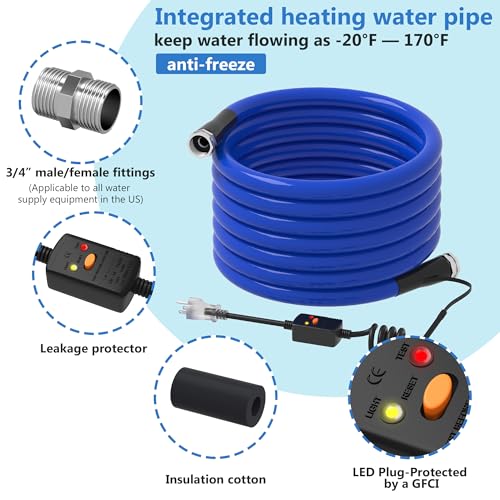 High Efficiency Anti Freezing: Thickened and wear-resistant PVC sheath is used to protect hoses and electrical components, extending their service life. The water pipe can withstand low temperatures up to -20 ° F and can be heated up to 167 ° F, making it fast and efficient