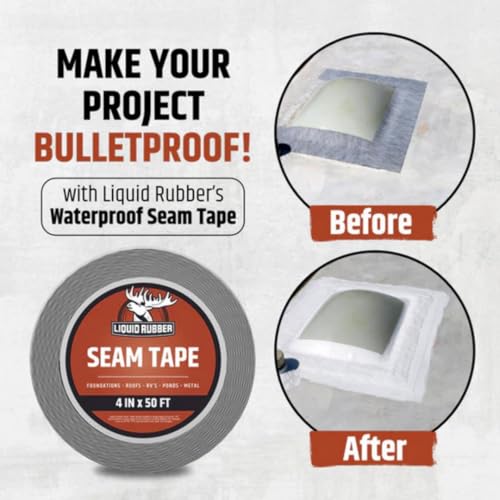 COAT LIQUID RUBBER SEAM TAPE WITH: Liquid Rubber Waterproof Sealant, Liquid Rubber Color Sealant, Liquid Rubber RV Roof Coating, Liquid Rubber Foundation Sealant, Liquid Rubber MetalSafe Sealant